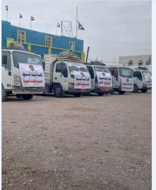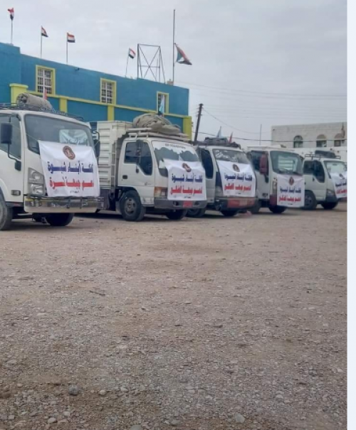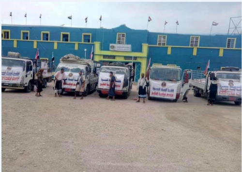 وقال الشيخ علي محسن السليماني رئيس القيادة المحلية للمجلس الانتقالي بالمحافظة، إن القافلة تحتوي على كمية من المواد الغذائية و المياه المعلبة والأدوية والمستلزمات الأخرى.