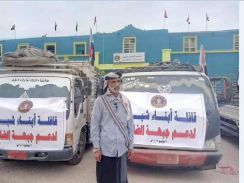 وأضاف السليماني، أن هذه القافلة المقدمة من تبرعات أبناء شبوة، تعكس روح المحبة والتلاحم بين أبناء الجنوب، وأنهم جسدا واحدا لايتجزأ، مؤكدا على أهمية دعم جبهات القتال التي تدافع عن الوطن الجنوبي والعرض والشرف والعقيدة.