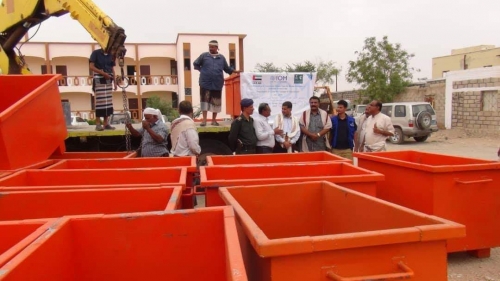 وزعت اليوم الخميس، 45 حاوية نظافة على أحياء مدينة عتق في محافظة شبوة، وذلك في إطار مشروع النقد مقابل العمل والخاص بنظافة المدينة، والممول من منظمة الهجرة الدولية .