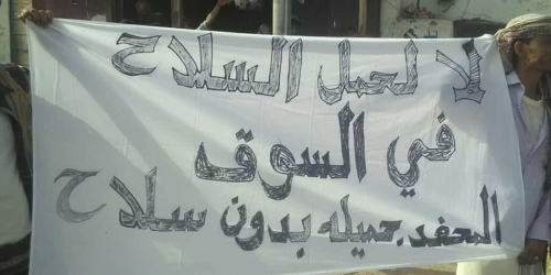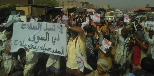 وطالب المتظاهرون جميع القوات الأمنية المرابطة بمديرية المحفد بضرورة القيام بواجبها، وأخذ التدابير اللازمة لمنع حمل السلاح؛ للحد من تكرار حالة الاقتتال بسوق المدينة.