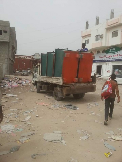 بدعم من المنظمة الدولية للهجرة وضمن برنامج النقد مقابل العمل، شهدت مدينة المكلا، اليوم الثلاثاء، توزيع عددا من حاويات النفايات في شوارع و أحياء مدينة المكلا ودعم مواقع جديدة بحاويات لجمع النفايات .