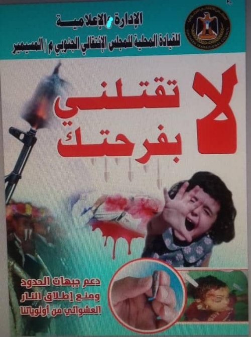 للتوعية من مخاطر إطلاق الأعيرة النارية، دشنت القيادة المحلية للمجلس الانتقالي الجنوبي بمديرية المسيمير محافظة لحج اليوم الأربعاء، حملة توعوية موسعة للتعريف بمخاطر إطلاق الأعيرة النارية .