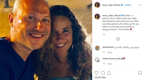 وعلقت "شيري"، على الصورة قائلة: "أخي.. هو الشخص المتواجد حينما تحتاج إليه، ويساندنك حينما تسقط، ويتمسك بك حينما لا يريد أحد.. أخي دائمًا صديق".