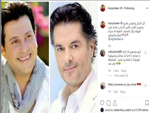 ونشر هاني شاكر صورة له بجانب راغب علامة وكتب: "كل الشكر والتقدير لأخويا وحبيبي الفنان الكبير راغب علامة على التهنئة وكل التمنيات الطيبة له بدوام النجاح والتوفيق".