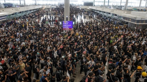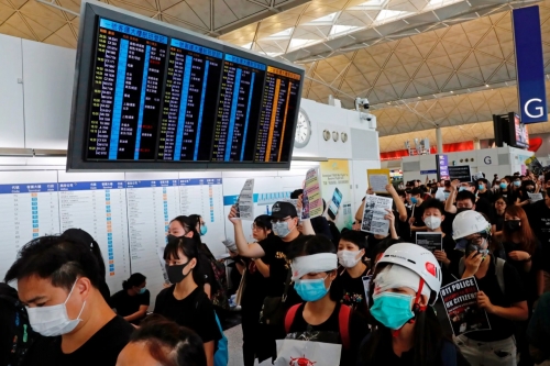 بسبب التظاهرات.. إلغاء جميع رحلات الطيران من وإلى مطار هونغ كونغ الصيني (صور)