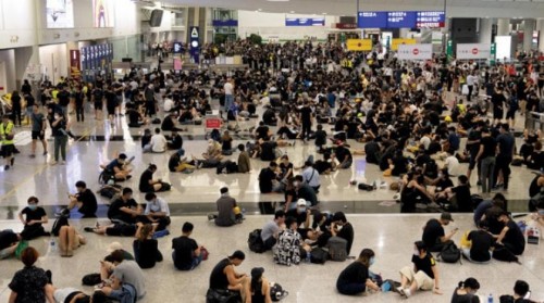 وكان مطار هونغ كونغ أعلن إلغاء جميع الرحلات المغادرة والواصلة الاثنين، بسبب تظاهرة جارية في محطته الرئيسية، بلغ عدد المشاركين فيها 5 آلاف شخص وفق ما أعلنته الشرطة.