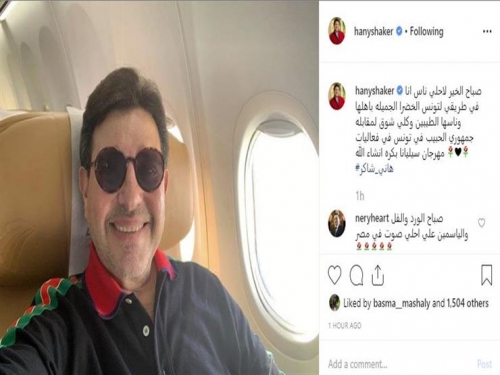 ونشر هاني شاكر صورة له من المطار خلال رحلته، عبر صفحته بموقع "إنستجرام"، وكتب: " صباح الخير لأحلى ناس أنا في طريقي لتونس الخضرا الجميلة بأهلها وناسها الطيبين وكلي شوق لمقابله جمهوري الحبيب في تونس في فعاليات مهرجان سيليانا بكرة إنشاء الله"