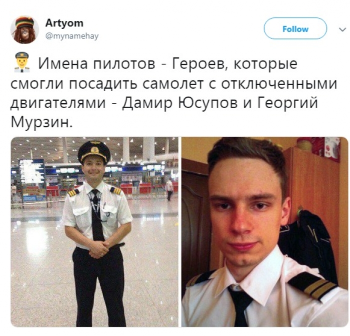 وصف الناطق باسم الرئاسة الروسية دميتري بيسكوف، الطيارين اللذين هبطا بالطائرة بسلام بالبطلين.