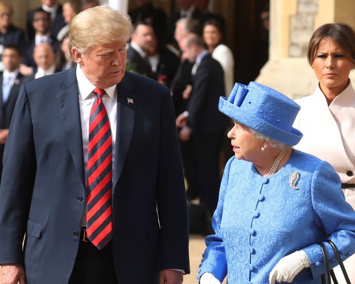 واخترق ترامب في زيارته لبريطانيا قواعد البروتوكول الملكي بربته على ظهر الملكة إليزابيث أثناء مأدبة العشاء، وظهوره يغلب عليه النعاس أثناء إلقاء الملكة خطابها الملكي، بمناسبة زيارة الرئيس إلى المملكة المتحدة.