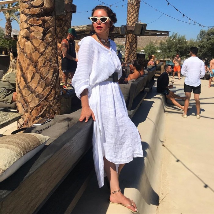 وظهرت لقاء في الصور بإطلالة كاجوال، مرتدية فستان أبيض، ونظارة شمسية.