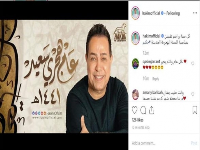 حرص المطرب الشعبي المصري حكيم على تهنئة جمهوره بمناسبة العام الهجري الجديد، الموافق اليوم السبت 31 أغسطس.