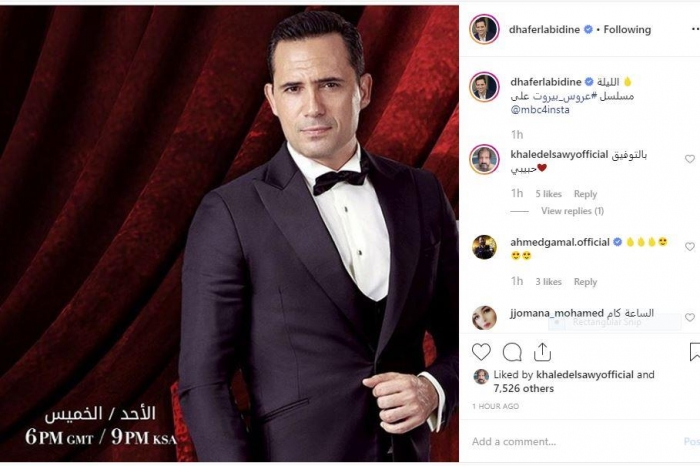 روج الفنان التونسي ظافر العابدين، لمسلسله الجديد "عروس بيروت"، وحرص على مشاركة جمهوره ومتابعي حسابه الرسمي على موقع "انستجرام بصورة من البوستر الرسمي لمسلسله الجديد "عروس لبنان"، وعلق عليها قائلًا: " انتظروني الليلة".