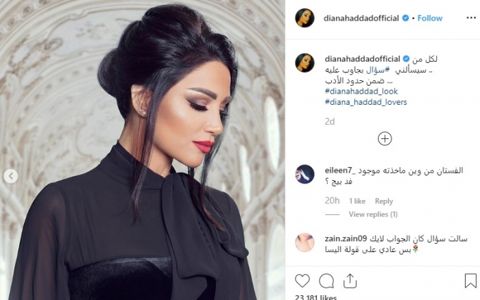 شاركت المطربة اللبنانية ديانا حداد، جمهورها ومتابعيها عبر حسابها بموقع "انستجرام"، بصور جديدة لها ظهرت خلالها بإطلالة أنيقة، إذ ارتدت فستانًا قطيفة باللون الأسود، .. واعتمدت تسريحة شعر هادئة.