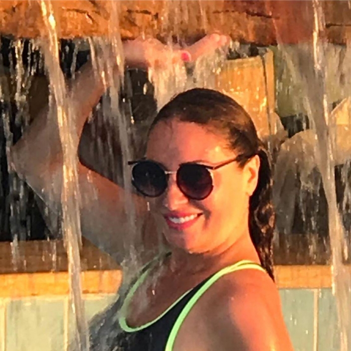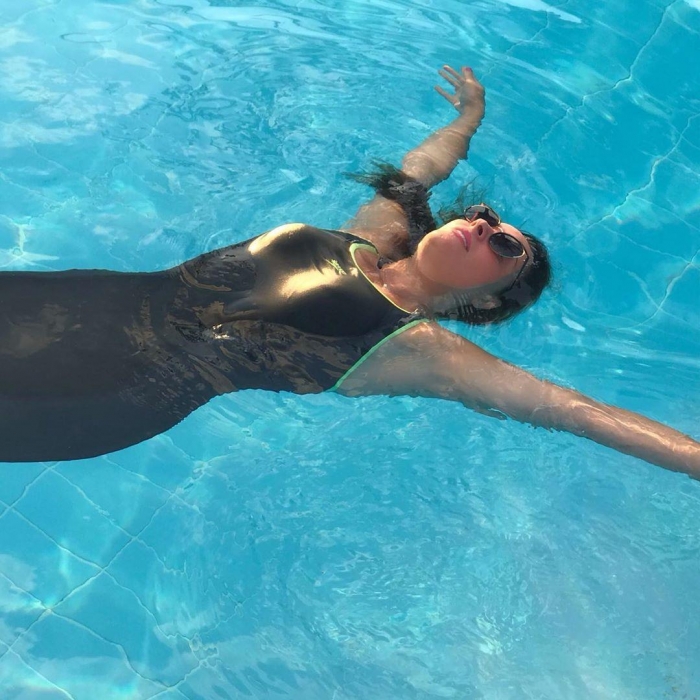 وظهرت الفقي أثناء قيامها بالسباحة، مرتدية نظارتها الشمسية، وعلقت على الصور قائلة: "آخر أيام الصيف الجميل".