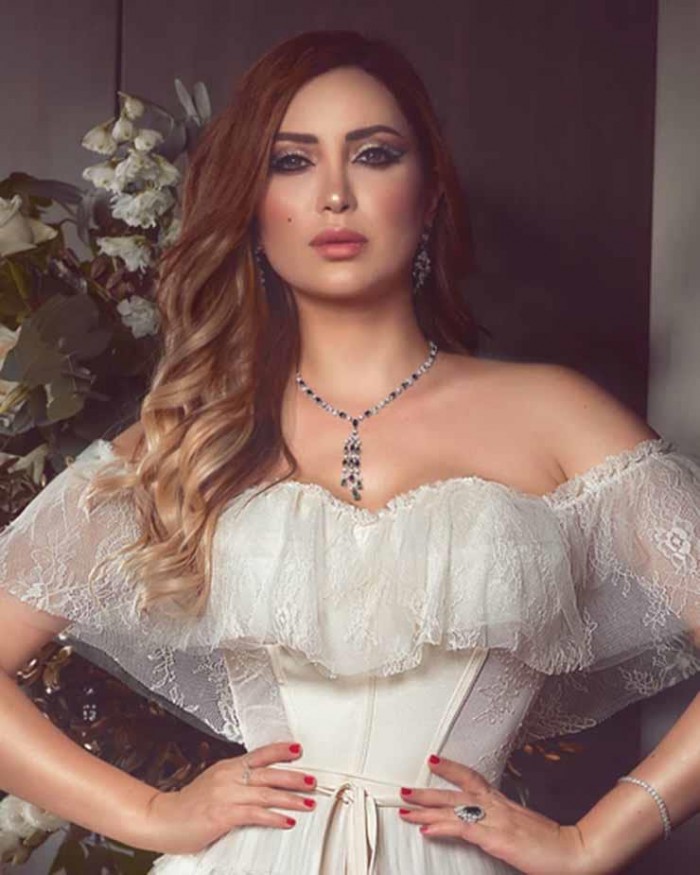 نسرين طافش تتألق بفستان أبيض في جلسة تصوير جديدة