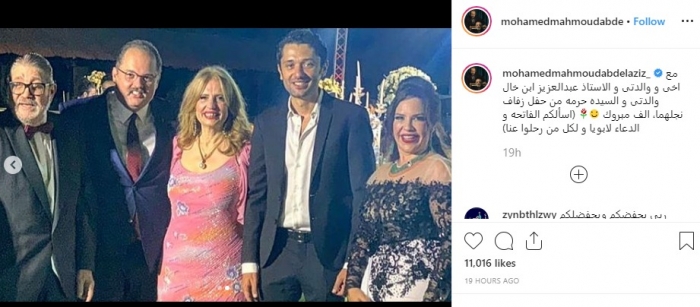 نشر الفنان والمنتج المصري محمد محمود عبدالعزيز، عبر حسابه الرسمي بموقع إنستجرام، صورتين تجمعه بوالدته وشقيقه الفنان كريم محمود عبدالعزيز من إحدى المناسبات.