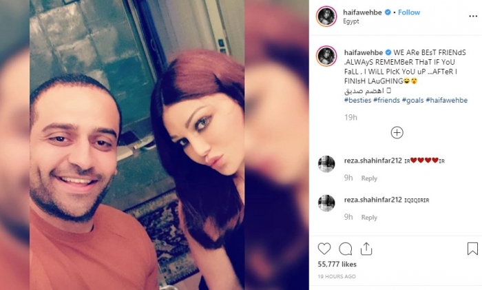 وكتبت هيفاء وهبي: "نحن أصدقاء مقربون، تذكر دائما أنني سأساعدك للوقوف من جديد، بعدما أنتهي من ضحكي عليك".