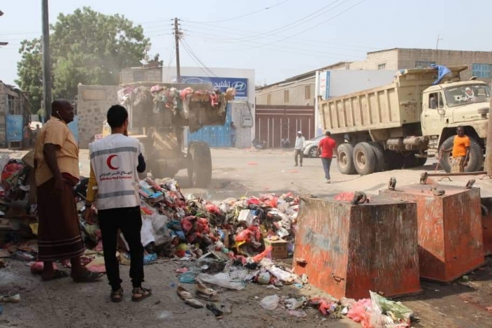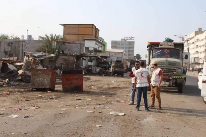 وتستمر حملة النظافة التي يمولها الهلال الأحمر الإماراتي، لمدة أربعة أيام وتهدف لرفع أكوام القمامة التي ملأت الشوارع وأدّت لانتشار البعوض والحشرات المسببة للأمراض.