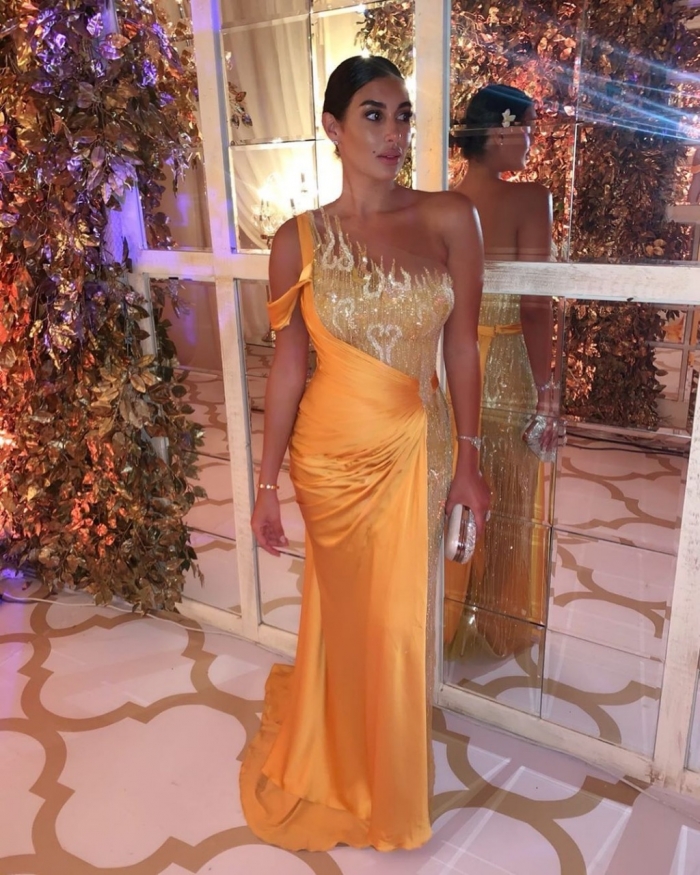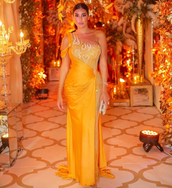 وظهرت ياسمين في الصور بإطلالة جذابة وأنيقة، وارتدت فستانًا أصفر طويل، أبرز أناقتها، ولاقت الصور إعجاب جمهورها.