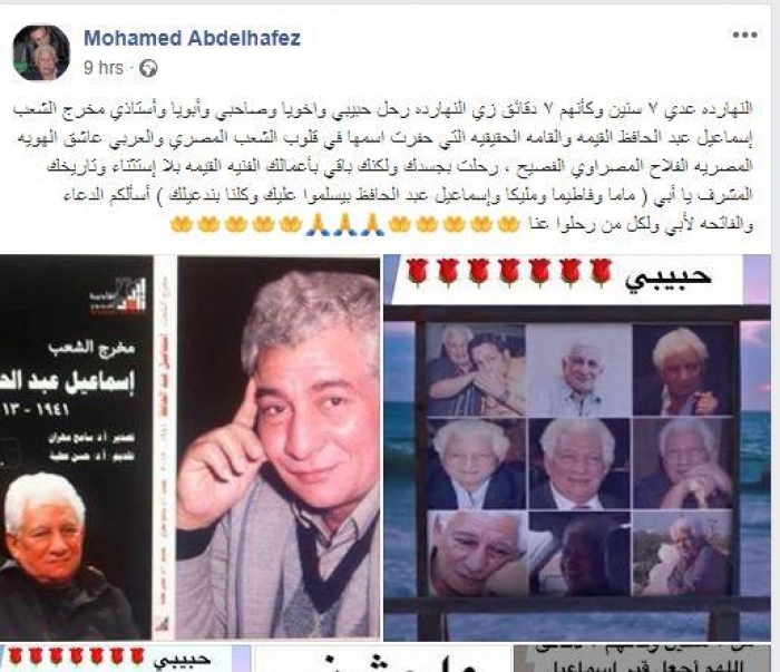 حرص الفنان المصري محمد عبدالحافظ على إحياء ذكرى رحيل والده المخرج الكبير إسماعيل عبد الحافظ، عبر حسابه الشخصي على بموقع "فيسبوك".