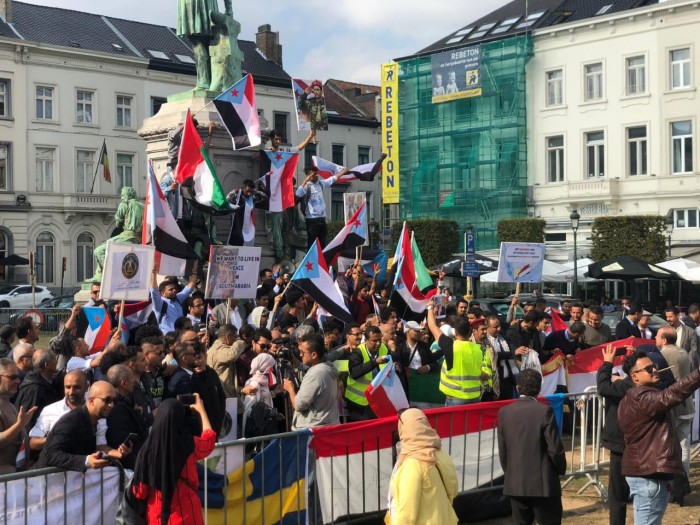 شاهد.. حضور كثيف لأبناء الجنوب أمام البرلمان الأوروبي تضامنا مع التحالف العربي