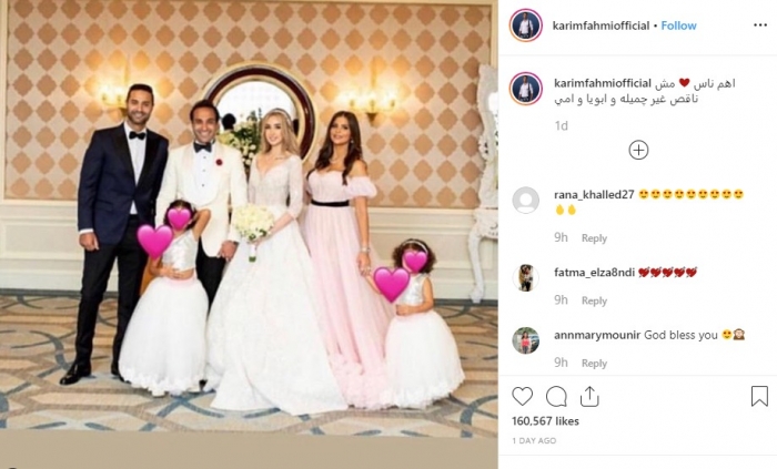 وكان الفنان كريم فهمي قد نشر منذ ساعات صورة له في حفل زفاف شقيقه الفنان أحمد فهمي، رفقة زوجته وابنتيه، وقام بعض المتابعين بسب كريم فهمي وبناته دون إبداء أسباب، وتدخل الفنان أحمد فهمي، وسب الفتاة التي سبت كريم فهمي وابنتيه.