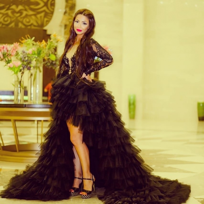 ظهرت دوللي في الصور بإطلالة جذابة ومتألقة، وارتدت فستانًا أسود اللون قصيرًا، كما ظهرت بشعر بني طويل.