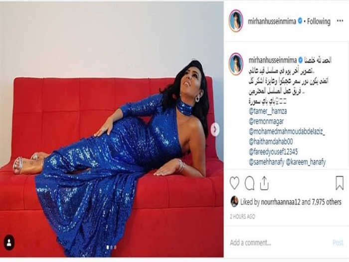 أعلنت الفنانة ميريهان حسين انتهاءها من تصوير دورها في مسلسل "قيد عائلي".