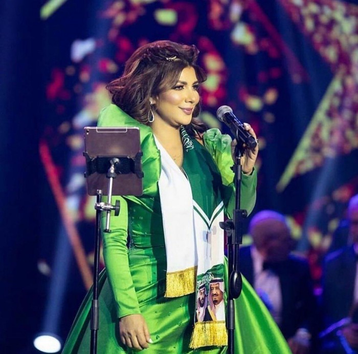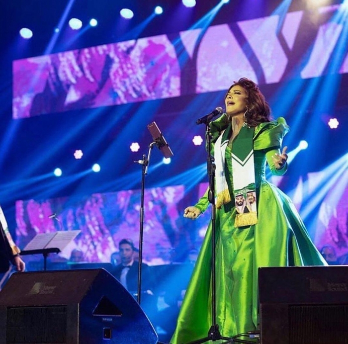 وظهرت أصالة على المسرح بفستان أخضر، ليتناسب مع علم المملكة العربية السعودية، وشاركت الشعب السعودي، فرحتهم بالعيد الوطني الـ89.