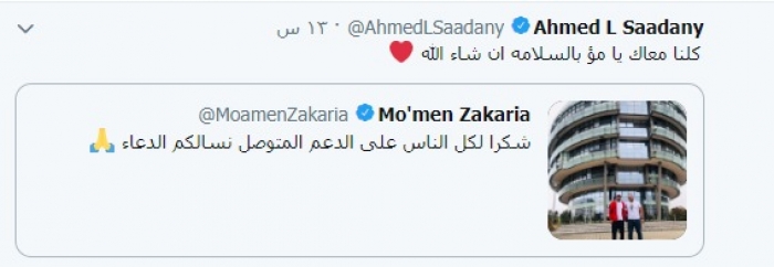 وكتب السعدني في حسابه على "تويتر": "كلنا معاك يا مؤ، بالسلامة إن شاء الله".