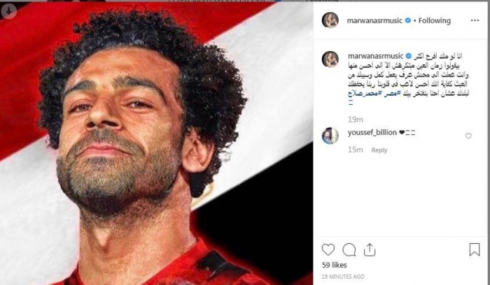ونشرت نصر، صورة صلاح، عبر حسابها على "إنستجرام" وعلقت قائلة: "أنا لو منك، أفرح أكتر، بيقولوا زمان العين مابتكرهش إلا اللي أحسن منها، وإنت عملت اللي محدش عرف يعمله، كمل وسيبك من العبث، كفاية إنك أحسن لاعب فى قلوبنا، ربنا يحفظك لبلدك، عشان احنا بنفتخر بيك".