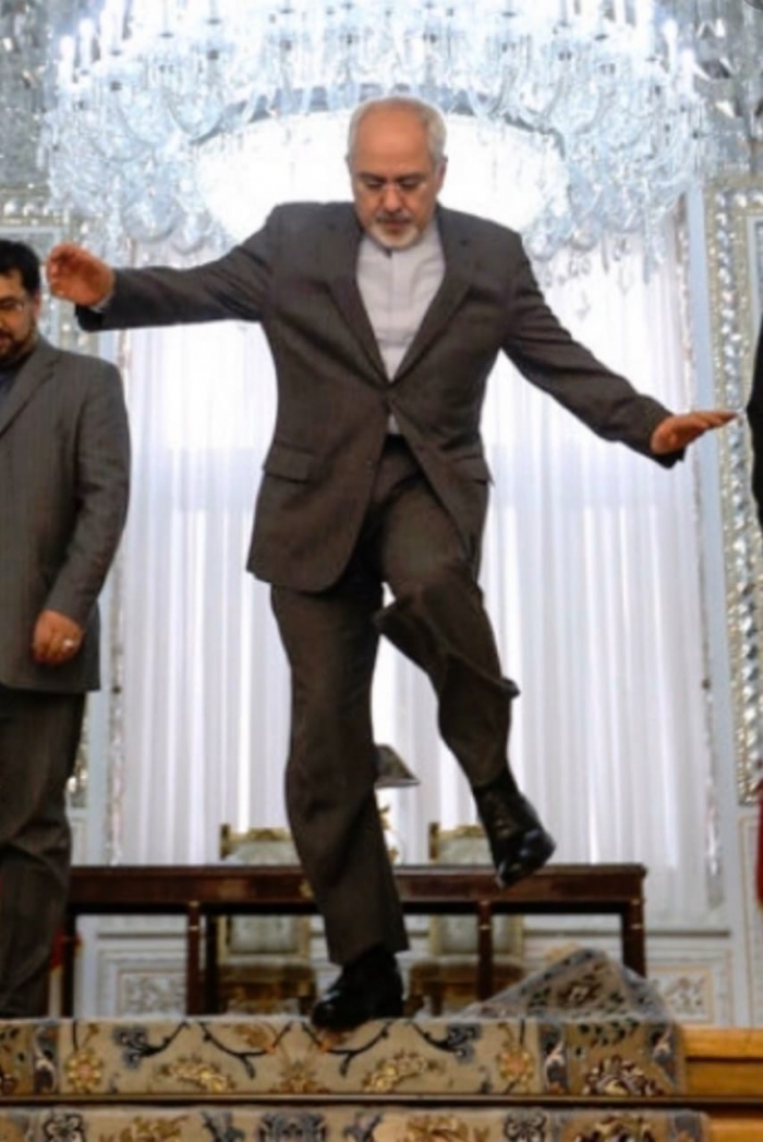 سخر أمير سعودي من وزير الخارجية الإيراني محمد جواد ظريف، حيث نشر صورة له أثناء تعثره في السير.