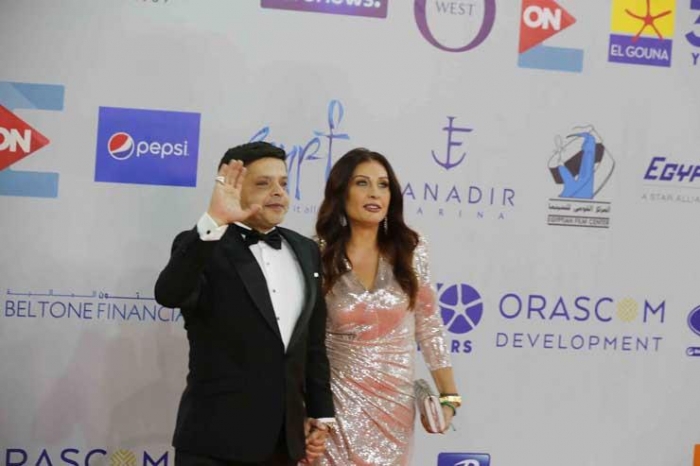 ظهر النجم الكوميدي الكبير محمد هنيدي لأول مع زوجته عبير السري، على هامش تكريمه بحفل ختام الدورة الثالثة من مهرجان الجونة السينمائي.