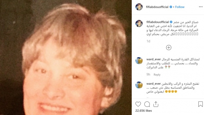 ونشرت الفنانة الاستعراضية، صورة لشقيقتها، عبر حسابها على إنستجرام، وكتبت: "صباح الخير من مصر أم الدنيا، أنا اختفيت لأن أختي في العناية المركزة في حالة حرجة، الرجاء الدعاء لها ولكل مريض بحبكم أوي".
