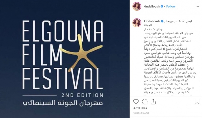 وكتبت كندة عبر حسابها بـ"انستجرام": "ليس دفاعا عن المهرجان، بل كلمة حق، مهرجان الجونة السينمائي هو اليوم واحد من أهم المهرجانات السينمائية في المنطقة، أصبح له اسم كبير دوليا وعالميا في وقت قياسي".