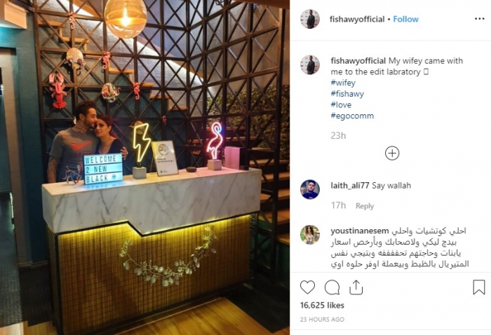 نشر الفنان أحمد الفيشاوي صورة تجمعه بزوجته، ندى كامل، عبر حسابه على "إنستجرام".