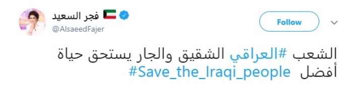 وكتبت السعيد تغريدة قائلة: "الشعب العراقي الشقيق والجار يستحق حياة أفضل".