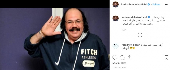 نشر النجم كريم عبدالعزيز، عبر حسابه الشخصي بموقع "إنستجرام"، صورة للفنان طلعت زكريا، ينعيه بها.