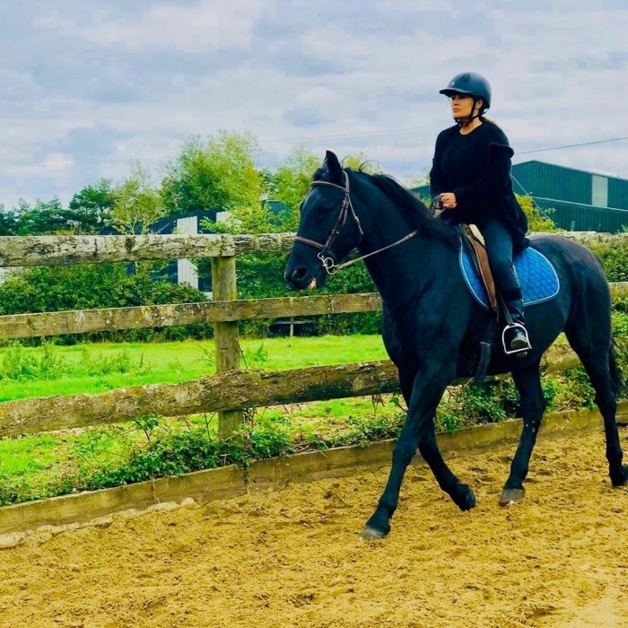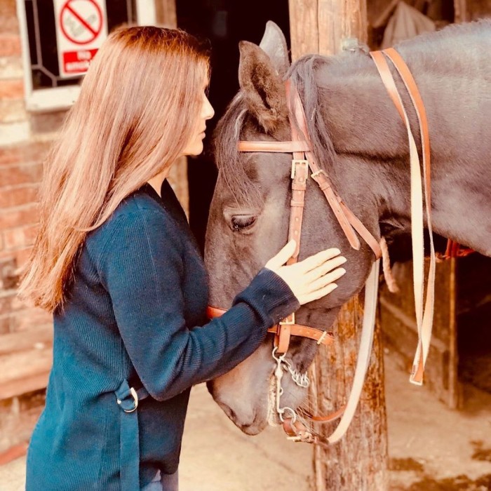 ظهرت سلمى تمتطي حصانها، فيما علقت مشيدة بنبل الخيول.