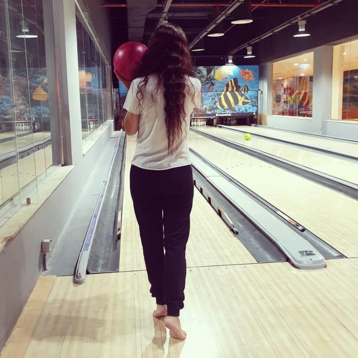 دوللي شاهين تشارك جمهورها بصورها من داخل صالة البولينج