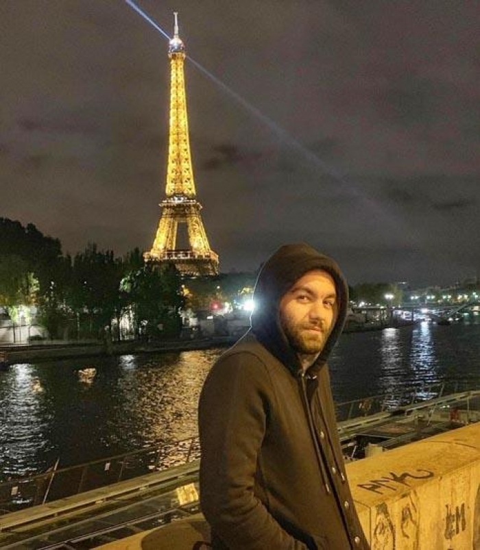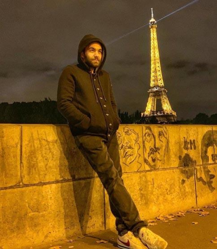 ظهر شريف بمفرده، وفي صور أخرى رفقة زوجته أمام برج إيفل في باريس، وعلق: "أنا أحب باريس".