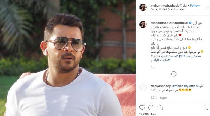 كشف المطرب محمد رشاد، عن أول لقاء جمعه بزوجته المذيعة مي حلمي، ونشر صورة عبر حسابه الرسمي بموقع "انستجرام".