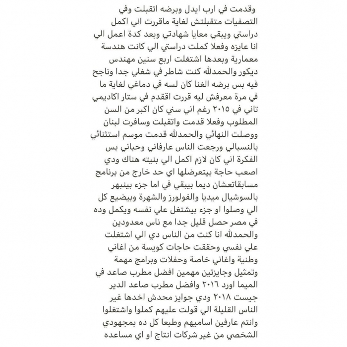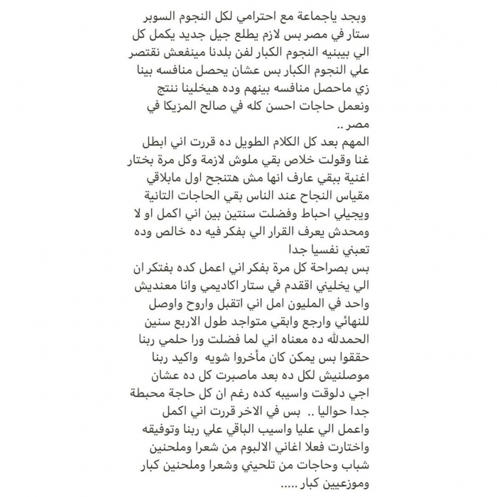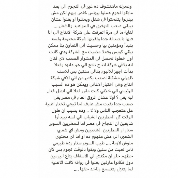 وتابع: "واجهت صعوبة في اختيار أغان لألبومي الجديد الذي أجهز له منذ عامين، فالذوق العام في مصر بقى صعب جدًا، وهذا هو السبب الرئيسي وراء قرار اعتزال الغناء".