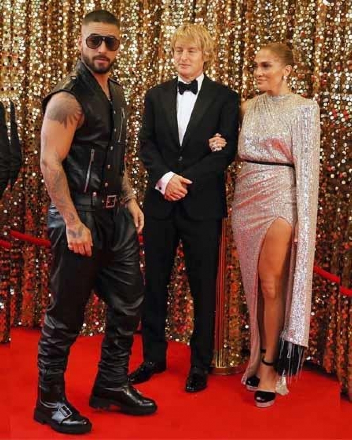 وظهرت جينيفر لوبيز في الصورة رفقة الممثل أوين ويلسون، والمطرب الكولومبي مالوما، في العرض الخاص لفيلمهم.