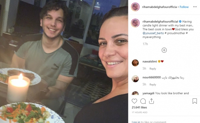 نشرت الفنانة ريهام عبدالغفور، عبر حسابها الشخصي بموقع "إنستجرام" صورة لها وهي تتناول العشاء رفقة ابنها يوسف فاروق.