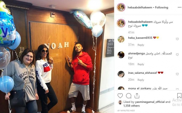هبة نشرت صورة من أمام غرفة مي بالمستشفى، ظهرت فيها إلى جوار زوج مي "أوكا"، وكُتب على باب الغرفة اسم المولود "نوح"، معلقة "مي وأوكا مبروك نوح".
