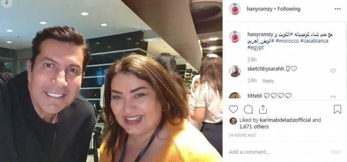 ظهر الفنان الكوميدي المصري هاني رمزي، بصحبة الفنانة الكويتية منى شداد، والنجم الكوميدي الكويتي داوود حسين، خلال تواجده بمهرجان الدار البيضاء المُقام بالمغرب في دورته الثانية.