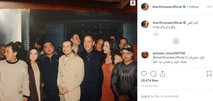 نشر الفنان شريف منير، عبر حسابه الرسمي بموقع إنستجرام، صورة تجمعه بعدد من نجوم الفن.