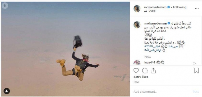 ونشر "إمام" صورة له وهو طائر في الجو، عبر حسابه الرسمي بموقع "إنستجرام"، قائلاً: "كان دايمًا شاغلني لو حنقدر نعمل مشهد زي ده في يوم من الأيام .. بس شكلنا كده عرفنا نعملها.. أفلامي كلها في حتة.. والمشهد ده في حتة تانية بعيدة .. لص بغداد".