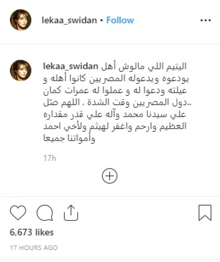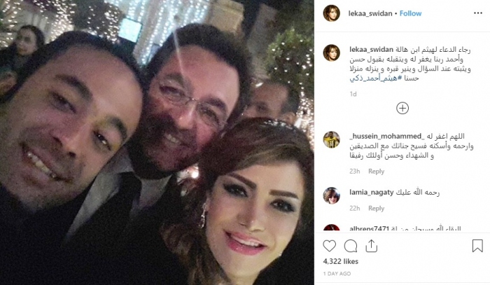 طلبت الفنانة لقاء سويدان من متابعي حسابها الرسمي على موقع "إنستجرام"، الدعاء للفنان الراحل هيثم أحمد زكي بالرحمة والمغفرة.